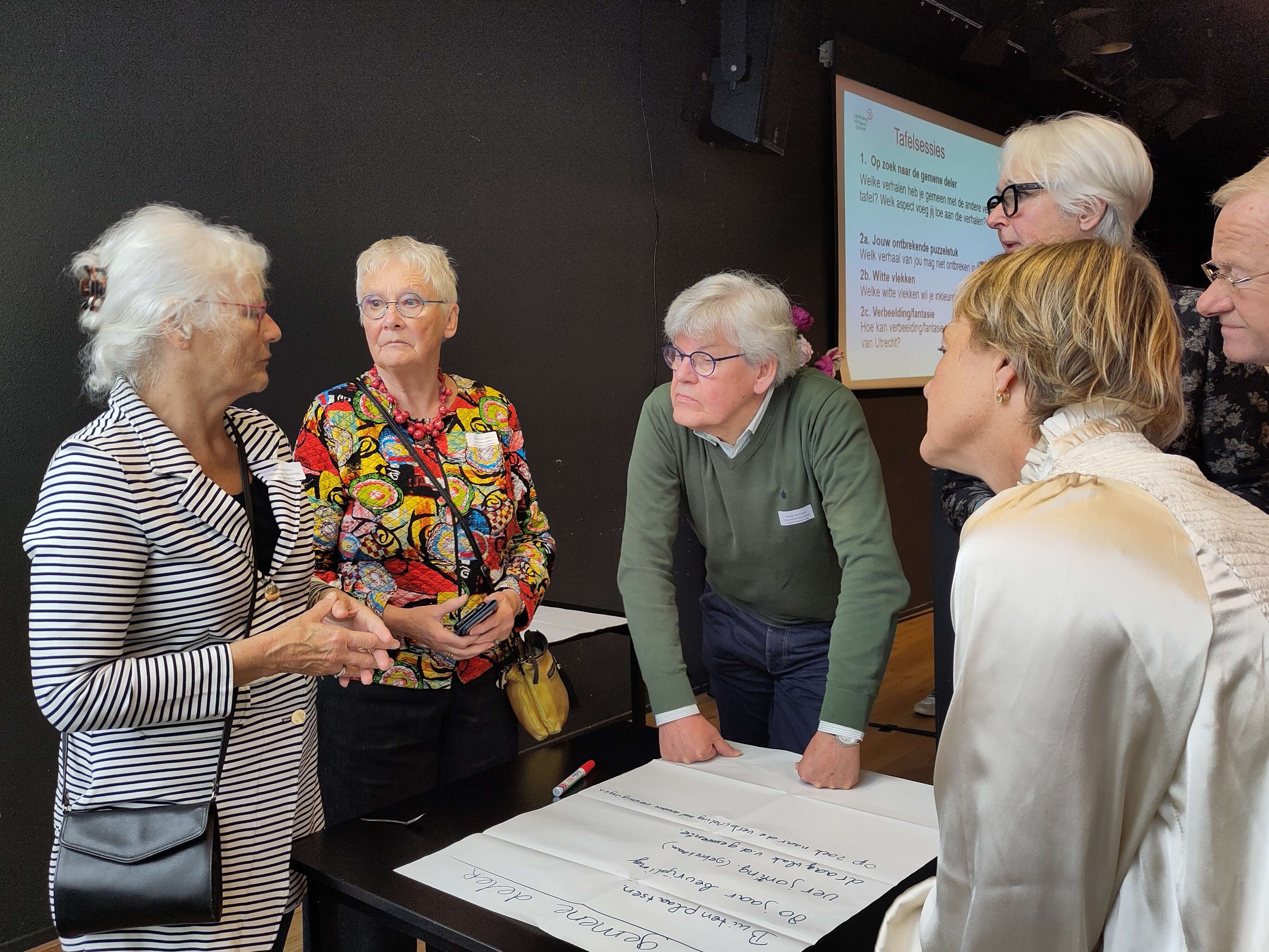 In de kleine zaal van Theater de Speeldoos hebben de deelnemers zich gebogen over vragen als: Wat is ons verhaal? Wat vertellen we (nog) niet? En welke verhalen delen we met elkaar? Er bleken veel meer gemene delers dan gedacht! En hoe mooi is het als die gedeelde verhalen allemaal op www.hetverhaalvanutrecht.nl te vinden zouden zijn. Daar gaan we (verder) mee aan de slag! Behalve goede inhoudelijke gesprekken was er tijdens de koffie en lunch uitgebreid de tijd om elkaar te leren kennen en ervaringen uit te wisselen.