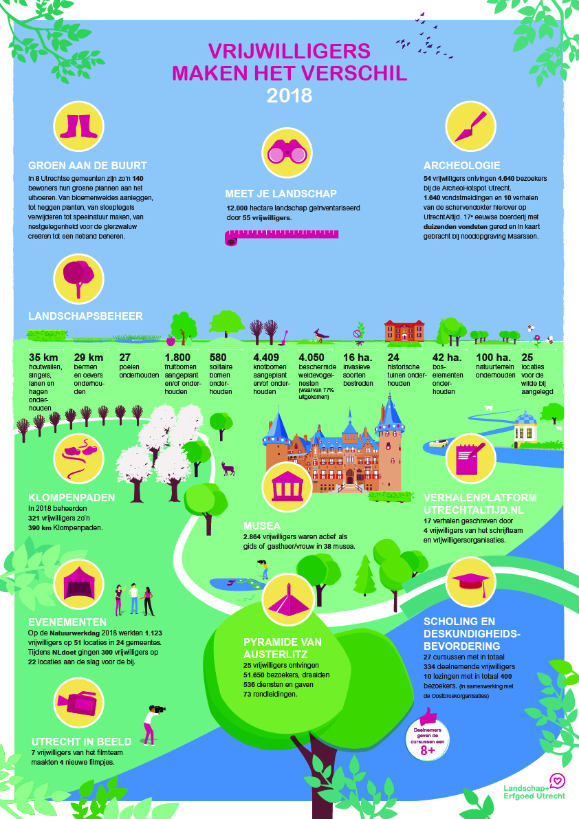 De vrijwilligersdag van Landschap Erfgoed Utrecht op 28 juni, was een groot succes. Burgemeester Sjoerd Potters (De Bilt) opende de dag. Ook werden de jaarlijkse resultaten van de vrijwilligers bekend gemaakt. Ook in 2018 waren er weer ongelooflijk veel vrijwilligers op de been om het landschap en erfgoed te steunen.