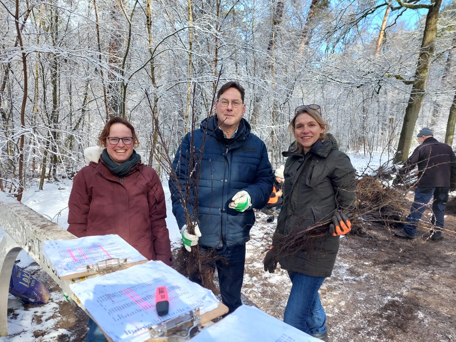 De belangstelling voor de boompjes was niet alleen groot bij de inwoners. Ook bestuurders brachten een bezoek aan de uitdeelactie. Zo kwam er ok hulp van Ivo Brautigam (directeur Landschap Erfgoed Utrecht), Mirjam Sterk (gedeputeerde provincie Utrecht) en Josja Veraart (directeur Natuur- en milieufederatie Utrecht).